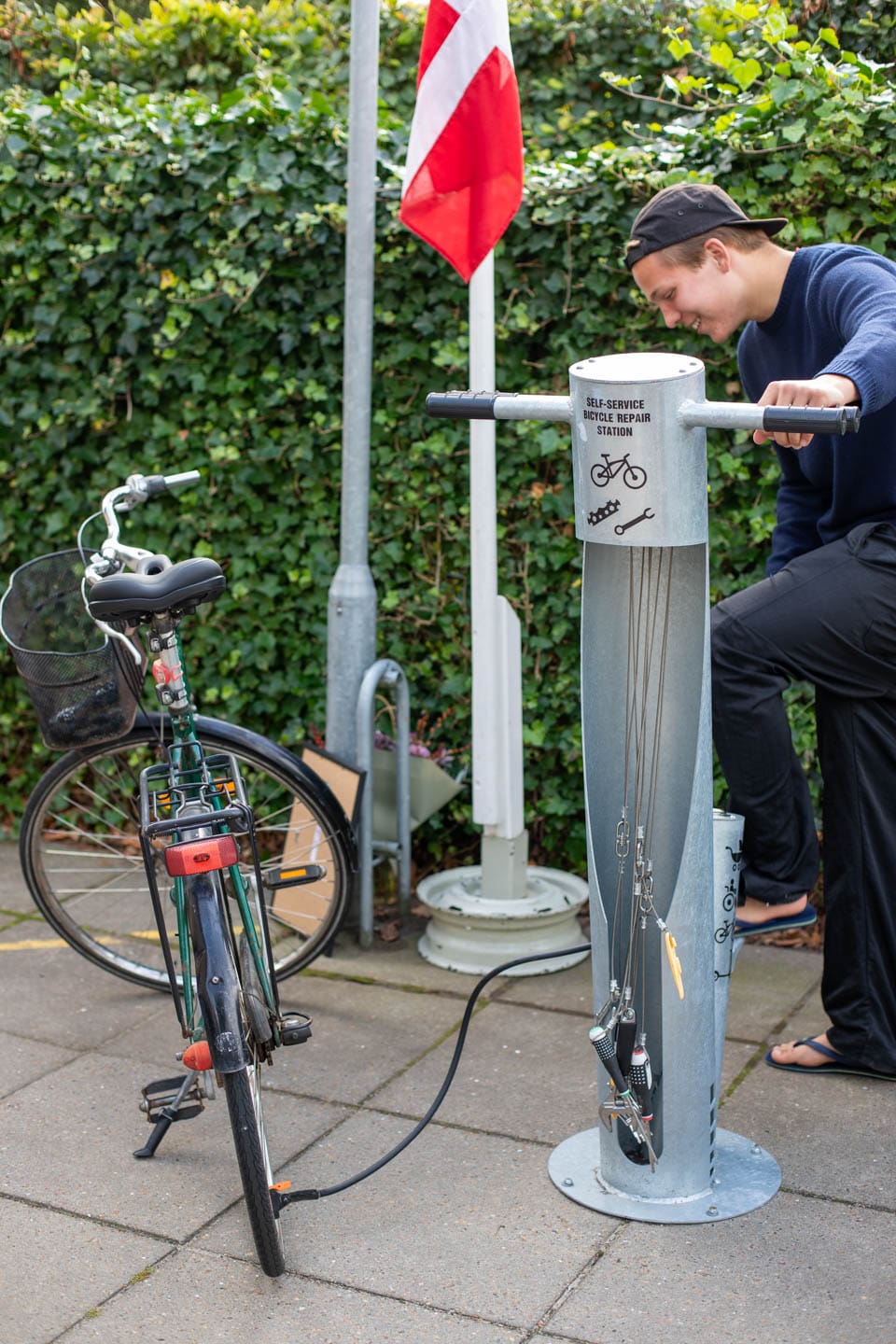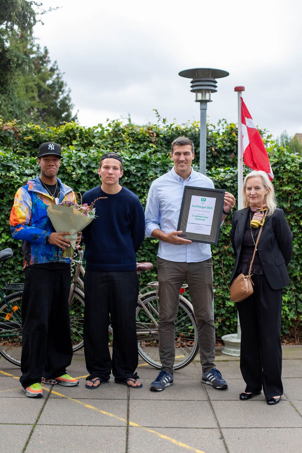 Sct. Knuds Gymnasium i Odense har gjort det endnu lettere for elever og lærere at vælge cyklen i hverdagen. Med støtte fra GF Fondens Trafiklegat har skolen opstillet to cykelpumpe-stationer, så flade dæk ikke bliver undskyldning for ikke at hoppe på cyklen.