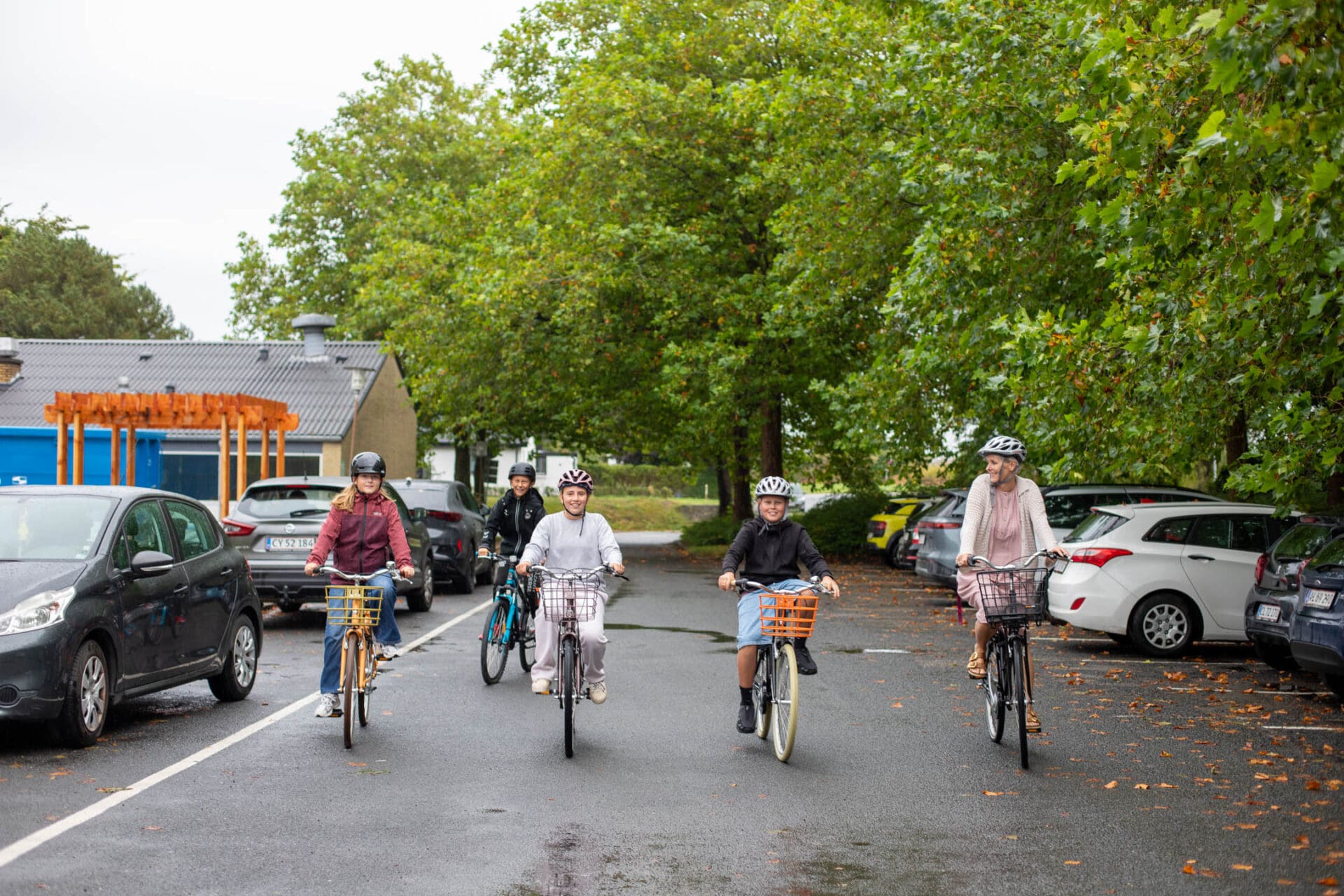 Cykel-lånebanken består af fire børnecykler og en voksencykel, og cyklerne bookes via Aula, hvis enten en lærer eller elev akut mangler en cykel på dagen. En praktisk og smart løsning. Nu kobles ingen af fællesskabet.